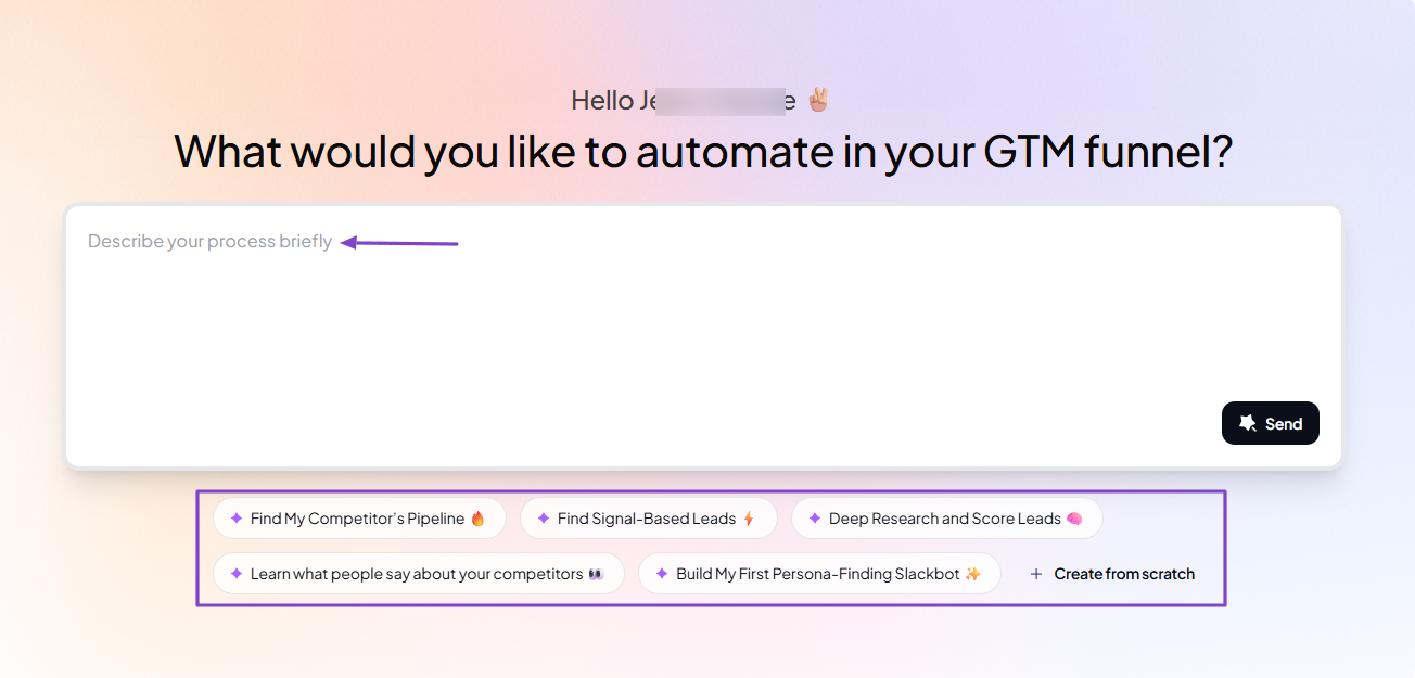 It has many pre-built GTM workflows powered by agents that you can launch instantly without tools or complexity.