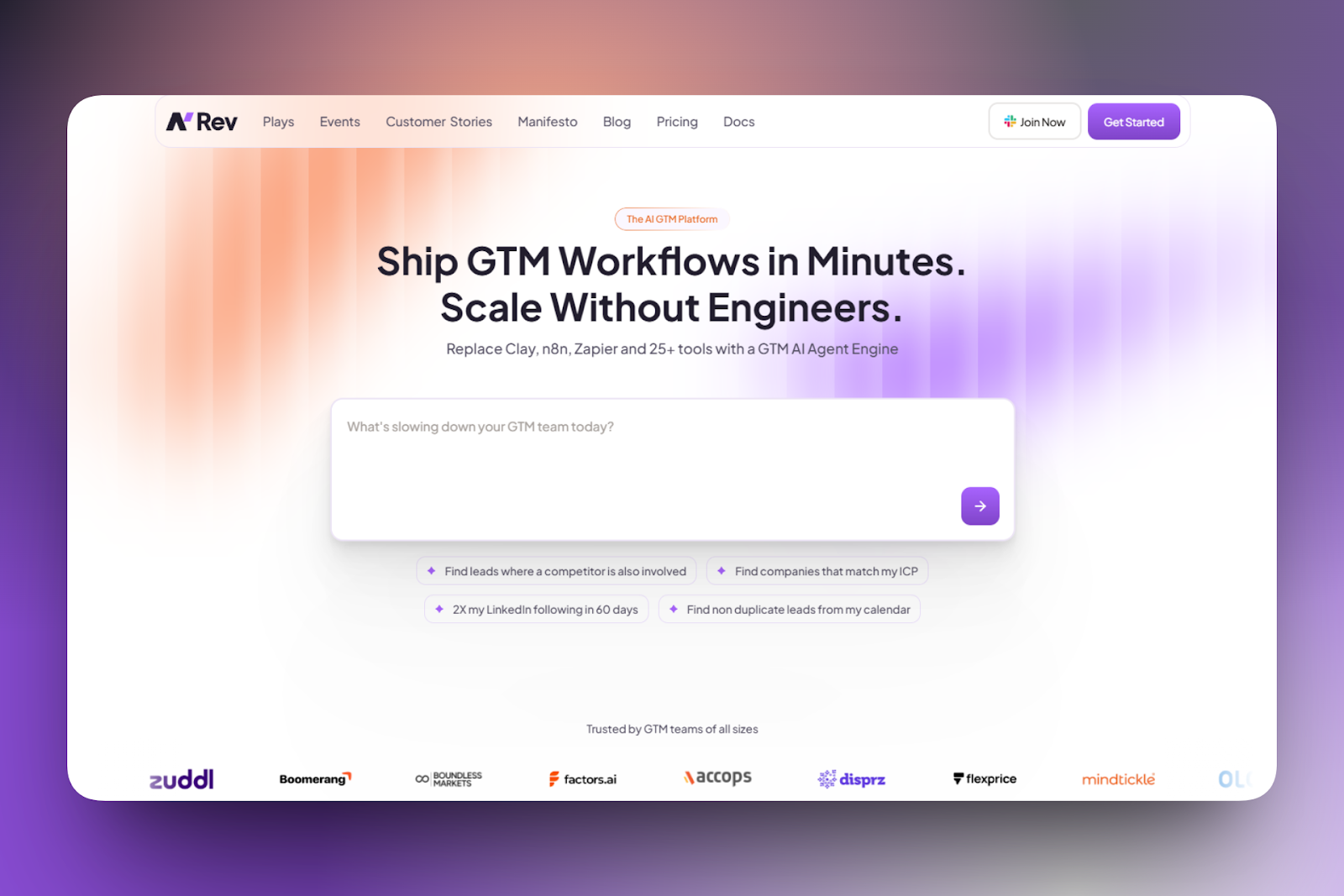 - RevOps leaders, GTM teams, and SaaS companies who want a platform to help scale their GTM strategy.