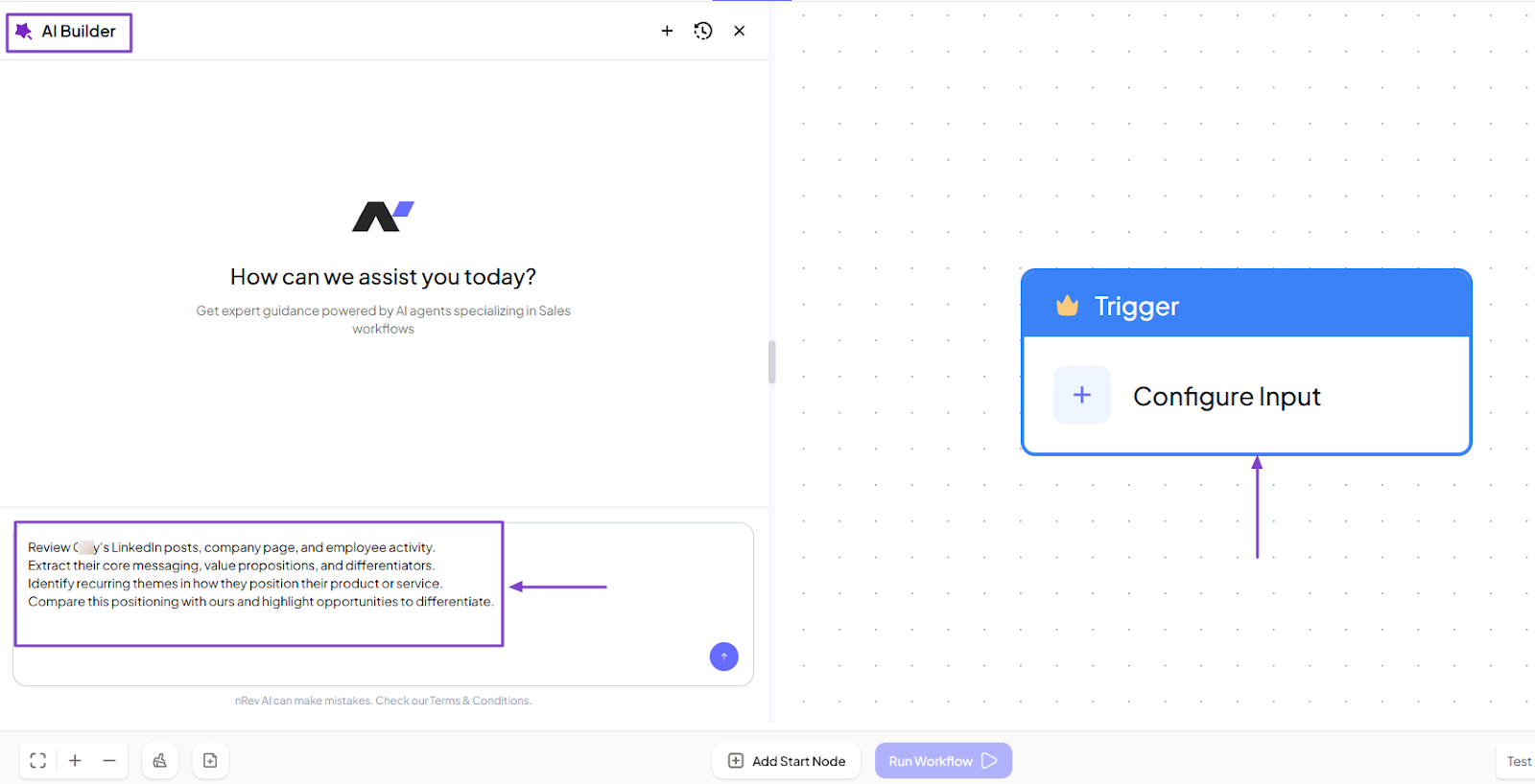 Building a workflow is very simple on nRev AI. You can briefly describe the process, then relax as the AI takes over.