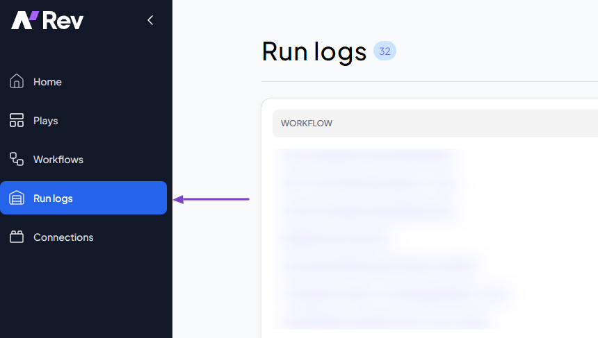 There is also the Run logs feature. It keeps track of every workflow you run on nRev AI. This means you can always go back and check your latest or even first workflow.