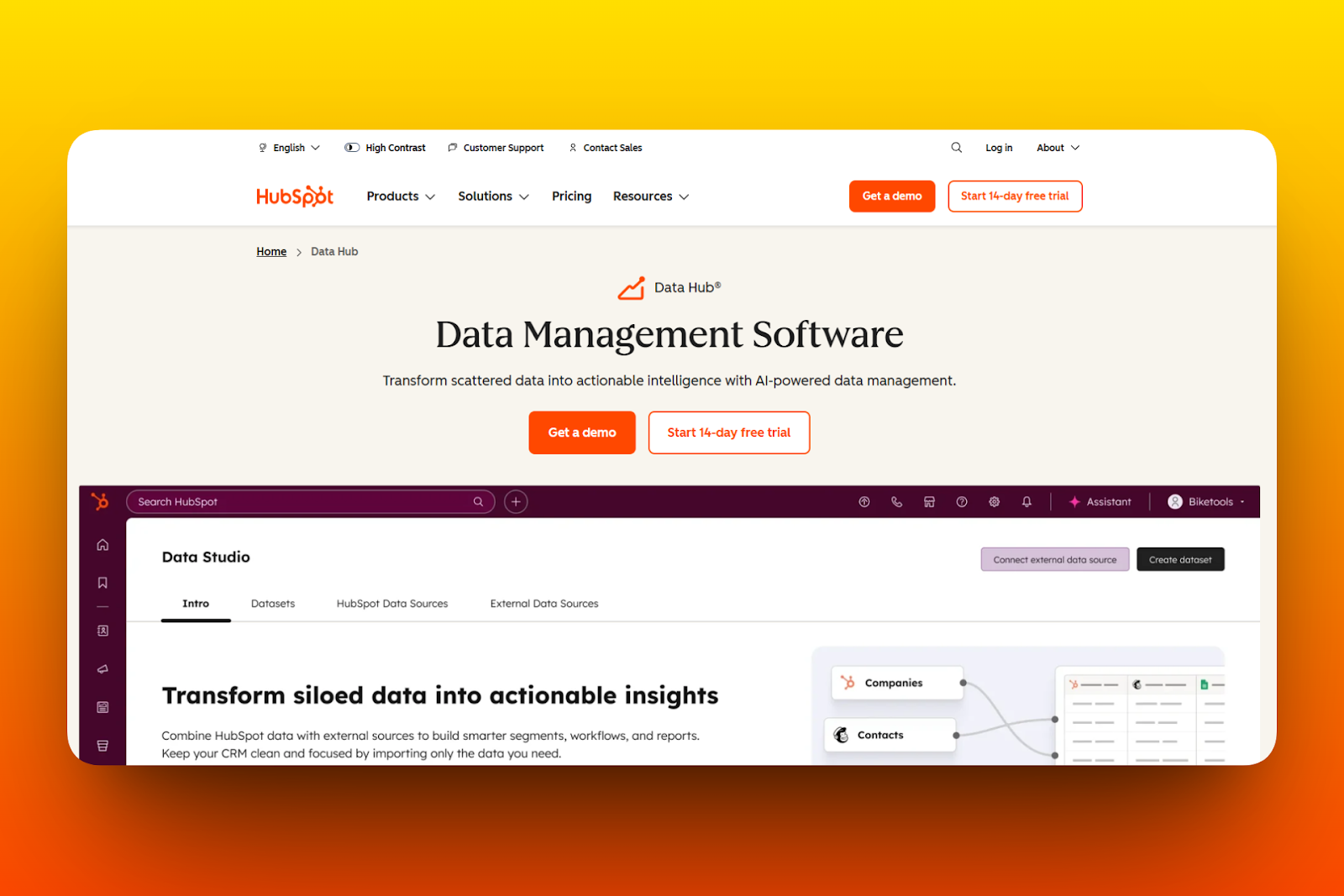2. HubSpot Data Hub - Best for Data Sync and Workflow Management