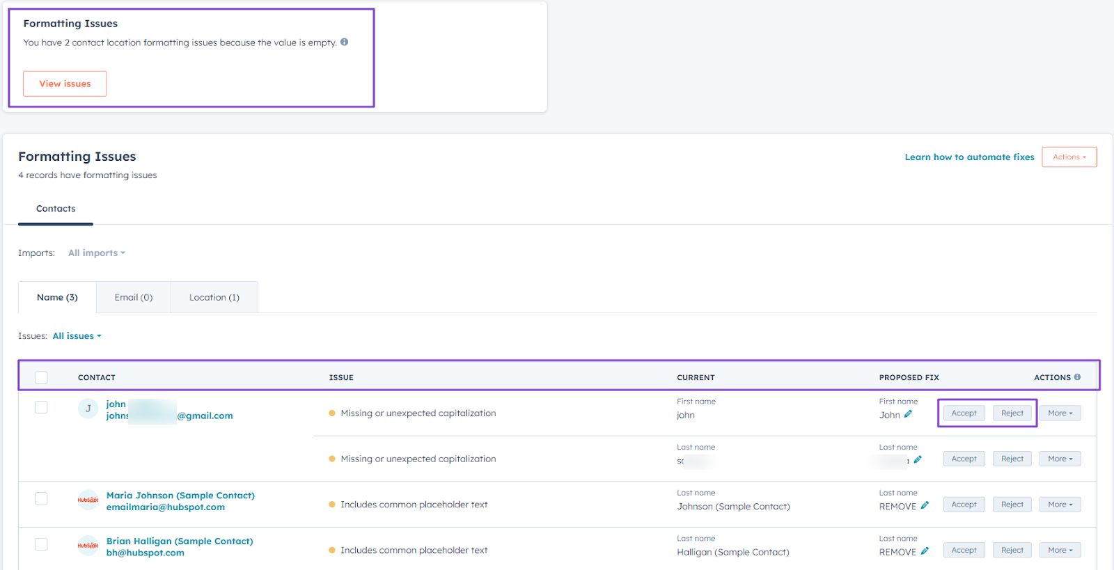 For instance, if you click “Formatting Issues,” you will see more details, like the contact, issue, and proposed fix (which you can accept or reject).