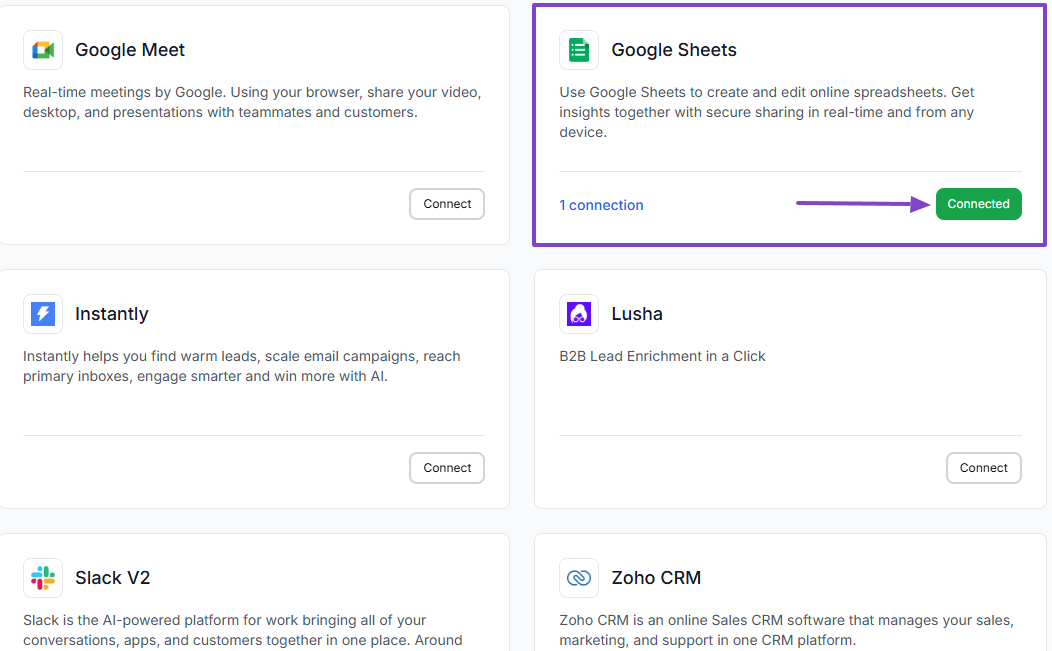Some revenue teams still use tools like Google Sheets to keep important lists, lead data, or quick reports. nRev integrates with it so that it can pull that data in, upload it automatically, and use it inside workflows.