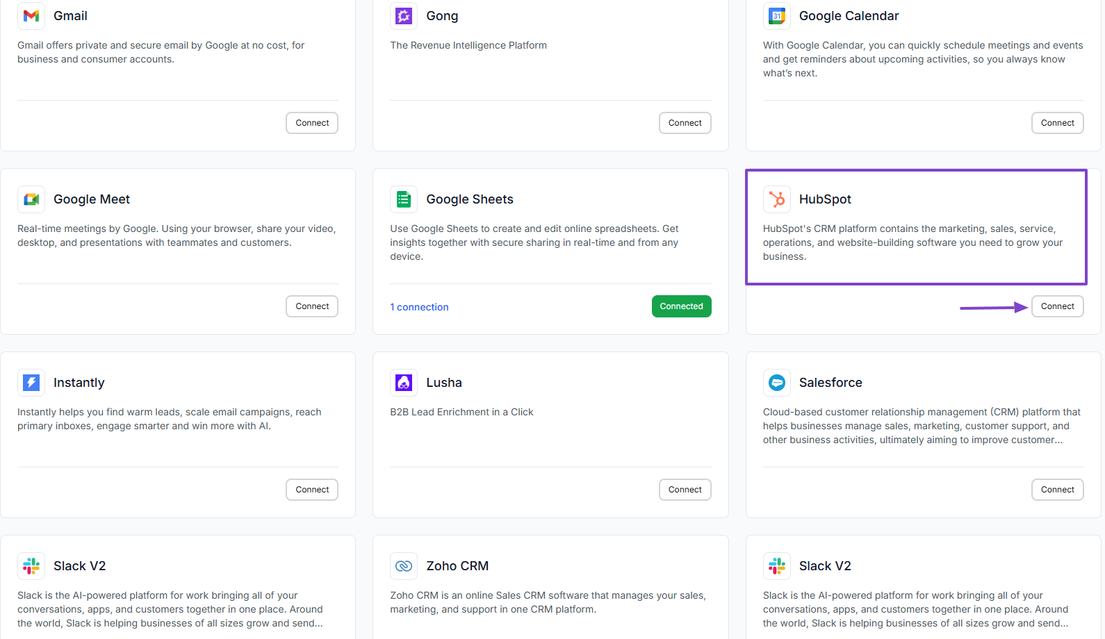 An example of the prompt could be: “Create a workflow that checks HubSpot for deals with no activity for 7 days, verifies if a next meeting is booked in Google Calendar, and alerts the rep in Slack if the deal needs attention.”